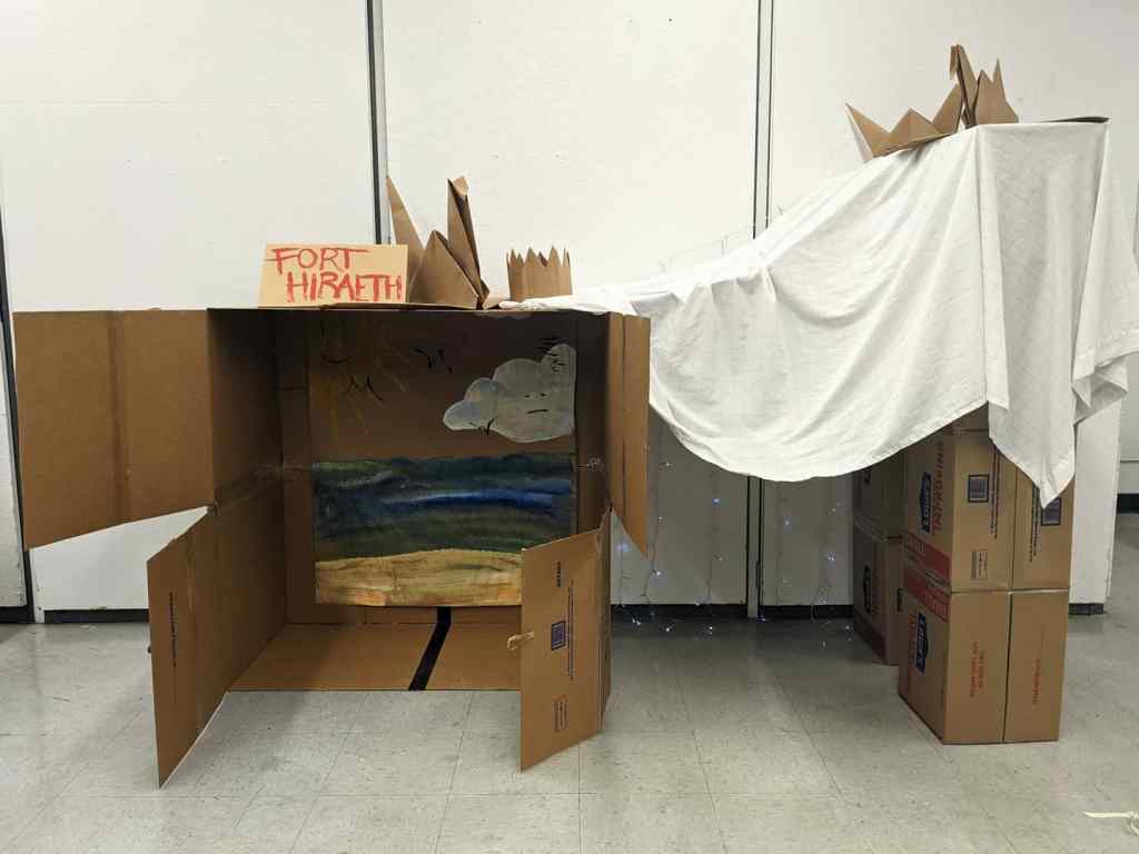 Cardboard, Fairy Lights, Acrylic Paint, Bed Sheets