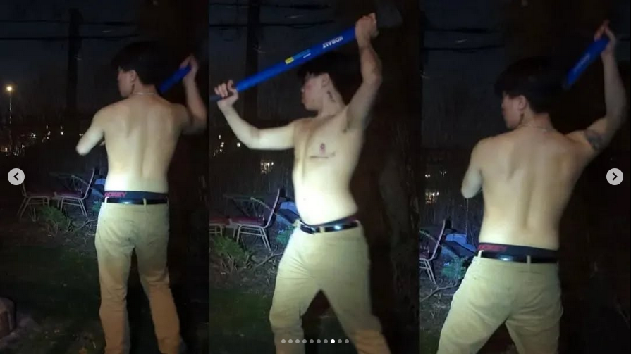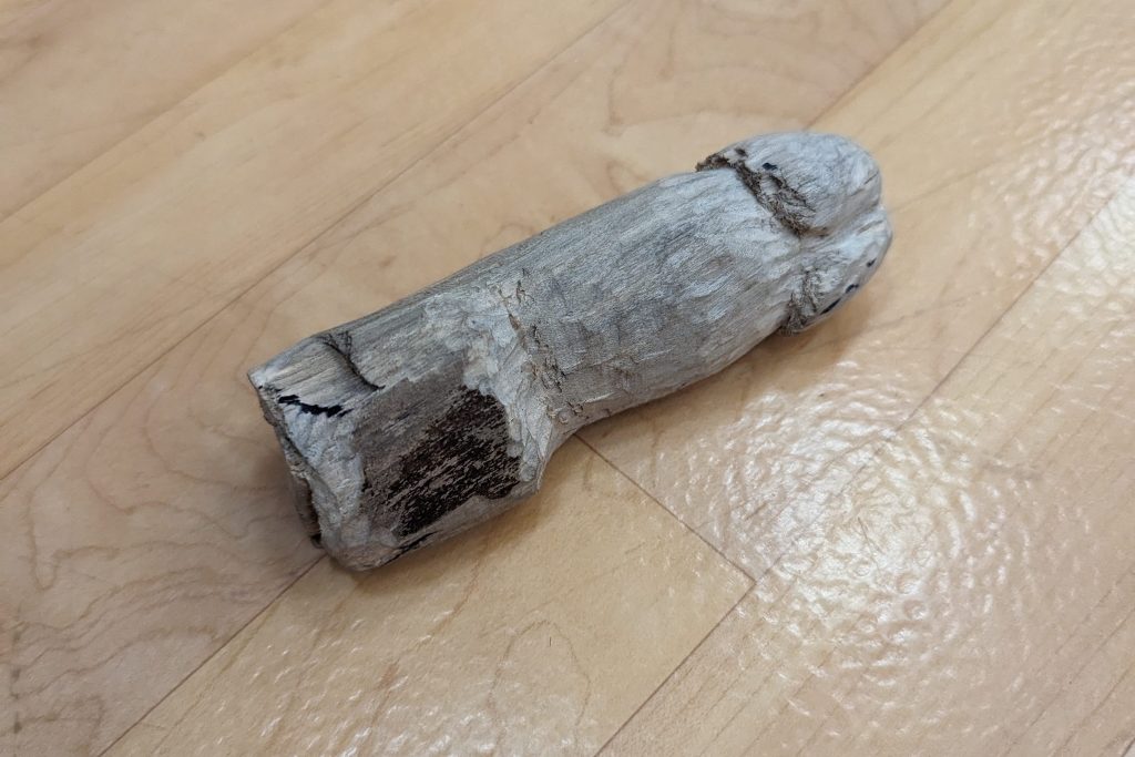 Starting from a humble log, Jayme chops and then whittles breaking down the material and shaping it into a flaccid penis to use as a packer. An exploration of Masculinity and self-love as a Trans man of color in a white cis-normative society.