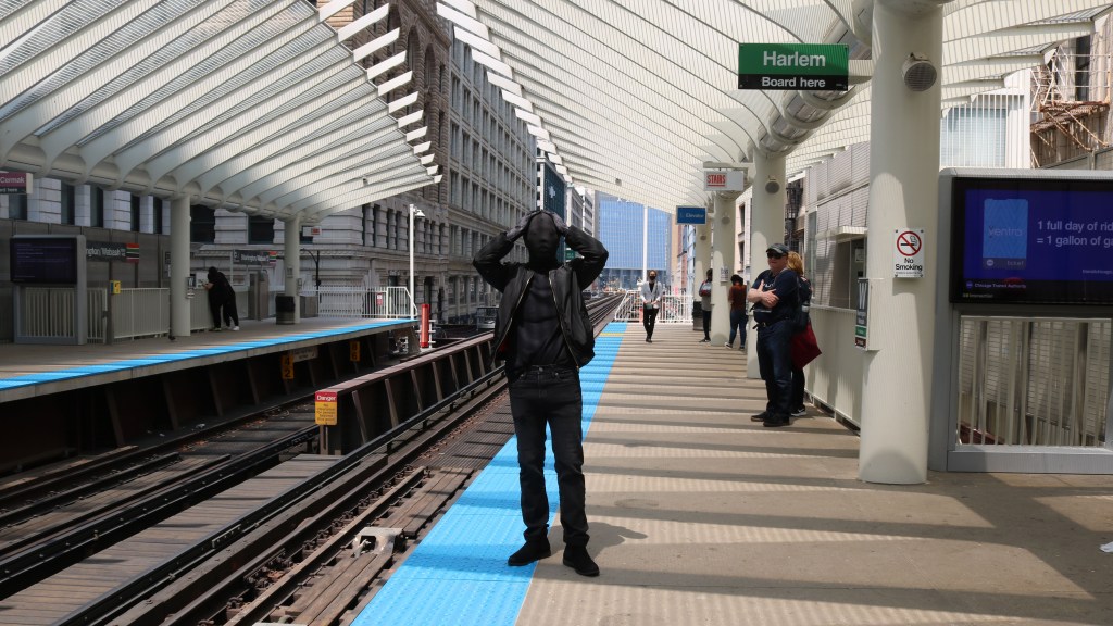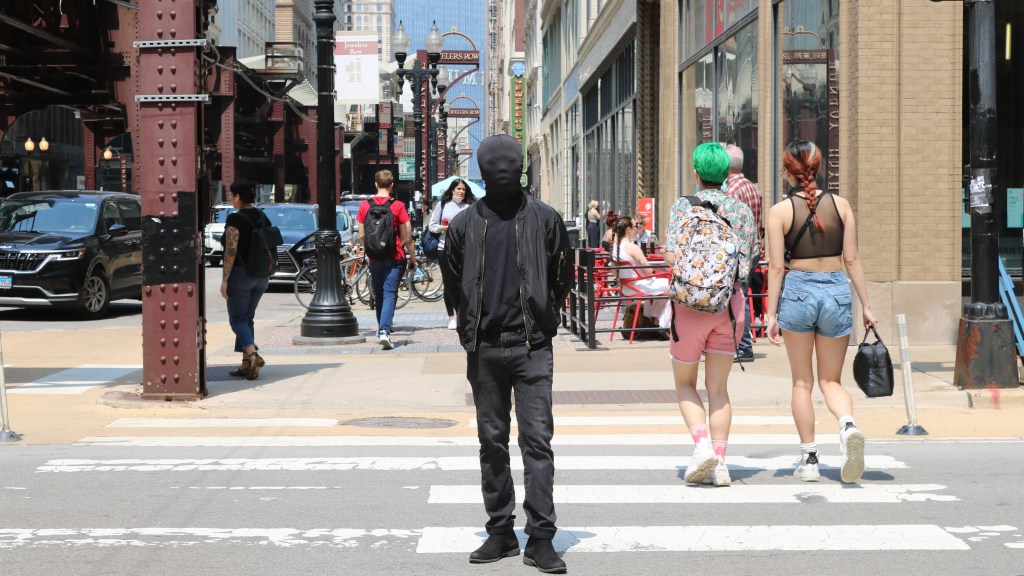 Spurred by a series of personally experienced racially-motivated harassment, Jayme enters the bustling streets of Downtown Chicago in a morph suit and non-descript clothes. The attempt to mask his identifying features as much as possible serve as a meditation on the objectification of race in the united states and an experiment.