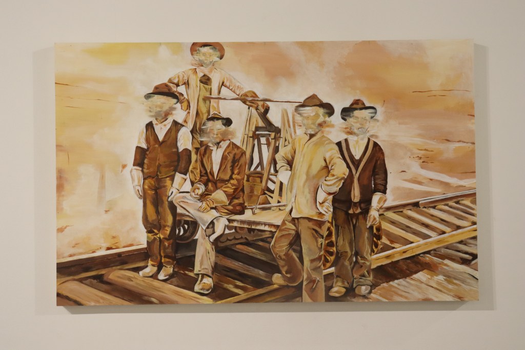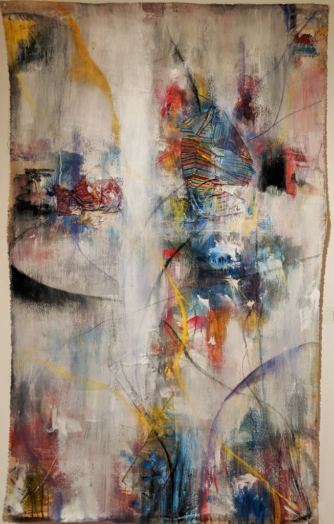 Acrylic, Fabric, Charcoal, Pastel, Drain Cleaner, Fabric Dye on Canvas (5x3ft)